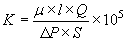 где К - коэффициент проницаемости, 10-3 мкм2 ; m - динамическая вязкость при условиях фильтрации, Па ´ с; l - длина образца, см; Q - расход профильтрованной воды, см3/с; DP - перепад давления на образце между входом и выходом, МПа; S - площадь поперечного сечения образца, см2.