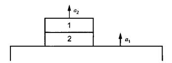 5 Общий принцип измеренийМетод основан на возбуждении широкополосной случайной или синусоидальной вибрации вибростендом (вибровозбудителем), на который помещен упругий материал вместе с массой нагрузки т вверху, и измерении виброускорений вибростенда - а1 и массы нагрузки т - а2. Теоретические основы метода измерений даны в приложении В. 6 Средства измерений6.1 Общие требования Для проведения измерений требуются частотный анализатор (предпочтительно двухканальный), два датчика и двухканальное измерительное оборудование. Схема измерительной установки изображена на рисунке 1.