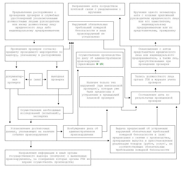 I. Общие положения1. Настоящий Административный регламент по исполнению государственной функции определяет последовательность и сроки действий (административные процедуры) по осуществлению государственной функции по надзору за выполнением федеральными органами исполнительной власти, органами исполнительной власти субъектов Российской Федерации, органами местного самоуправления, организациями, а также должностными лицами и гражданами (далее - организации и граждане) обязательных требований пожарной безопасности (далее - государственный пожарный надзор или ГПН). 2. Исполнение государственной функции по надзору в установленной сфере деятельности осуществляется в соответствии с: Конституцией Российской Федерации (Российская газета, 25.12.1993, № 237); Гражданским кодексом Российской Федерации (Собрание законодательства Российской Федерации, 1994, № 32, ст. 3301, 1996, № 9, ст. 773, № 34, ст. 4026; 1999, № 28, ст. 3471; 2001, № 17, ст. 1644, № 21, ст. 2063; 2002, № 12, ст. 1093, № 48, ст. 4737, ст. 4746; 2003, № 2, ст. 167, № 52 (ч. I), ст. 5034; 2004, № 27, ст. 2711; № 31, ст. 3233; 2005, № 1 (ч. I), ст. 18, 39, 43, № 27, ст. 2722, № 30 (ч. II), ст. 3120; 2006, № 2, ст. 171; № 3, ст. 282, № 23, ст. 2380, № 27, ст. 2881, № 31 (ч. I), ст. 3437, № 45, ст. 4627, № 50, ст. 5279, № 52 (ч. I), ст. 5497, 5498; 2007, № 1 (ч. I), ст. 21, № 7, ст. 834, № 27, ст. 3213, № 31, ст. 3993, № 41, ст. 4845, № 49, ст. 6079, № 50, ст. 6246; 2008, № 17, ст. 1756, № 20, ст. 2253, № 29 (ч. I), ст. 3418, № 30 (ч. I), ст. 3597, № 30 (ч. II), ст. 3616, 3617; 2009, № 1, ст. 14, 19, 20, 23, № 7, ст. 775, № 26, ст. 3130, № 29, ст. 3582, 3618); Кодексом Российской Федерации об административных правонарушениях (Собрание законодательства Российской Федерации, 2002, № 1 (ч. I), ст. 1, № 18, ст. 1721, № 30, ст. 3029, № 44, ст. 4295, 4298; 2003, № 1, ст. 2, № 27 (ч. I), ст. 2700, № 27 (ч. II), ст. 2708, 2717, № 46 (ч. I), ст. 4434, 4440, № 50, ст. 4847, 4855, № 52 (ч. I), ст. 5037; 2004, № 19 (ч. I), ст. 1838, № 30, ст. 3095, № 31, ст. 3229, № 34, ст. 3529, 3533, № 44, ст. 4266; 2005, № 1 (ч. I), ст. 9, 13, 37, 40, 45, № 10, ст. 762, 763, № 13, ст. 1077, 1079, № 17, ст. 1484, № 19, ст. 1752, № 25, ст. 2431, № 27, ст. 2719, 2721, № 30 (ч. I), ст. 3104, № 30 (ч. II), ст. 3124, 3131, № 40, ст. 3986, № 50, ст. 5247, № 52 (ч. I), ст. 5574, 5596; 2006, № 1, ст. 4, 10, № 2, ст. 172, 175, № 6, ст. 636, № 10, ст. 1067, № 12, ст. 1234, № 17 (ч. I), ст. 1776, № 18, ст. 1907, № 19, ст. 2066, № 23, ст. 2380, 2385, № 28, ст. 2975, № 30, ст. 3287, № 31 (ч. I), ст. 3420, 3432, 3433, 3438, 3452, № 43, ст. 4412, № 45, ст. 4633, 4634, 4641, № 50, ст. 5279, 5281, № 52 (ч. I), ст. 5498; 2007, № 1 (ч. I), ст. 21, 25, 29, 33, № 7, ст. 840, № 15, ст. 1743, № 16, ст. 1824, 1825, № 17, ст. 1930, № 20, ст. 2367, № 21, ст. 2456, № 26, ст. 3089, № 30, ст. 3755, № 31, ст. 4001, 4007, 4008, 4009, 4015, № 41, ст. 4845, № 43, ст. 5084, № 46, ст. 5553, № 49, ст. 6034, 6065, № 50, ст. 6246; 2008, № 10 (ч. I), ст. 896, № 18, ст. 1941, № 20, ст. 2251, 2259, № 29 (ч. I), ст. 3418, № 30, № 30 # (ч. I), ст. 3582, 3601, 3604, ст. 3735, № 45, ст. 5143, № 49, ст. 5738, 5745, 5748, № 52 (ч. I), ст. 6235, 6236, 6248; 2009, № 1, ст. 17, № 7, ст. 771, 777, № 19, ст. 2276, № 23, ст. 2767, № 26, ст. 3120, 3122, 3131, 3132, № 29, ст. 3597, 3599, 3635, 3642, № 45, ст. 5265, 5267, № 48, ст. 5755); Арбитражным процессуальным кодексом Российской Федерации (Собрание законодательства Российской Федерации, 2002, № 30, ст. 3012; 2004, № 31, ст. 3216, № 45, ст. 4377; 2005, № 14, ст. 1210; 2006, № 1, ст. 8; 2007, № 41, ст. 4845; 2008, № 18, ст. 1941, № 24, ст. 2798, № 30 (ч. 1), ст. 3594, № 49, ст. 5727; 2009, № 26, ст. 3122, № 29, ст. 3642); Градостроительным кодексом Российской Федерации (Собрание законодательства Российской Федерации, 2005, № 1 (ч. I), ст. 16, № 30 (ч. II), ст. 3128; 2006, № 1, ст. 10, 21, № 23, ст. 2380, № 31 (ч. I), ст. 3442, № 50, ст. 5279, № 52 (ч. I), ст. 5498; 2007, № 1 (ч. I), ст. 21, № 21, ст. 2455, № 31, ст. 4012, № 45, ст. 5417, № 46, ст. 5553, № 50, ст. 6237; 2008, № 20, ст. 2251, 2260, № 29 (ч. I), ст. 3418, № 30 (ч. I), ст. 3604, № 30 (ч. II), ст. 3616, № 52 (ч. I), ст. 6236; 2009, № 1, ст. 17, № 29, ст. 3601, № 48, ст. 5711); Федеральным законом от 21 декабря 1994 г. № 69-ФЗ "О пожарной безопасности" 