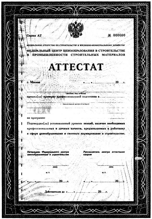 I. Общие положения1. Настоящее Положение регламентирует порядок проведения аттестации работников, занятых в сфере ценообразования и сметного нормирования в строительстве и устанавливает соответствующие профессиональные требования к ним. 2. Аттестация проводится с целью подтверждения профессиональной компетентности указанной категории работников, их знаний и навыков, соответствующих нормативно-методическим документам, составляющим сметно-нормативную базу 2001 года, методологии Федерального центра ценообразования в строительстве и промышленности строительных материалов (далее - Федеральный центр ценообразования), выполняющего функции по совершенствованию методов сметного нормирования, подготовке методической и нормативной документации по вопросам определения сметной стоимости строительства. 3. Проведение аттестации должно способствовать формированию кадрового состава работников подрядных и проектных организаций, организаций заказчиков, застройщиков и инвесторов, организаций, занятых регулированием вопросов сметного нормирования, а также систематическому повышению профессионального уровня специалистов сметного дела. 4. Аттестация проводится не реже одного раза в три года. 5. Аттестация осуществляется соответствующим центром аттестации кадров (далее - аттестационная комиссия). 6. Аттестация проводится по трем направлениям и предусматривает: а) аттестацию образовательного уровня работника с учетом современных требований науки и практики; б) оценку качества выполнения работником служебных обязанностей (производственная и трудовая дисциплина, эффективность использования рабочего времени, отношение к овладению новыми знаниями и передовым опытом и т.п.); в) оценку личных качеств работника. II. Требования по образовательному уровню подготовки1. Работник, занятый в сфере ценообразования и сметного нормирования в строительстве, должен знать: - основы экономики строительства и особенности строительства в условиях рынка; - сметные, рыночные, договорные цены в строительстве; - состав и структуру проектной документации на строительство; - основы организации и технологии строительного производства; - основные технико-экономические характеристики и потребительские свойства строительных материалов и конструкций; - основные положения по подсчету объемов работ по рабочим чертежам; - методику и практику определения цен на строительную продукцию в базисном, текущем и прогнозном уровне цен; - особенности определения стоимости строительства на отдельных стадиях проектирования; - правила расчетов за выполненные работы (готовые объекты, этапы, конструктивные элементы и виды работ); - основные положения по подготовке и проведению инвестиционных торгов (аукционов). 2. Работник, занятый в сфере ценообразования и сметного нормирования в строительстве должен уметь: - работать с контрактной и проектной сметной документацией, строительными нормами и правилами; - производить технико-экономическую оценку конструктивных и объемно-планировочных решений; - осуществлять проверку сметной документации, включая сметы по рабочим чертежам; - использовать информационные технологии составления сметной документации. 3. Для подтверждения образовательного уровня подготовки могут представляться: - удостоверение (свидетельство) о повы