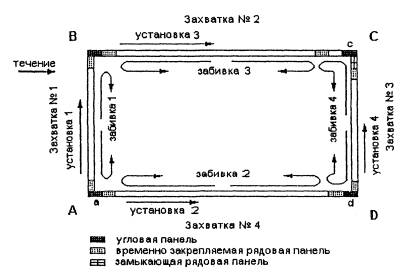 Д.3.5.2 При определенном опыте работ по сборке круглых шпунтовых ограждений и благоприятных гидрометеорологических условиях возможно применение несколько упрощенной технологии сооружения круглого шпунтового ограждения по варианту II без устройства промежуточных фиксирующих точек, закрепляемых с помощью специального отрезка панели, и забивки панелей по захваткам.