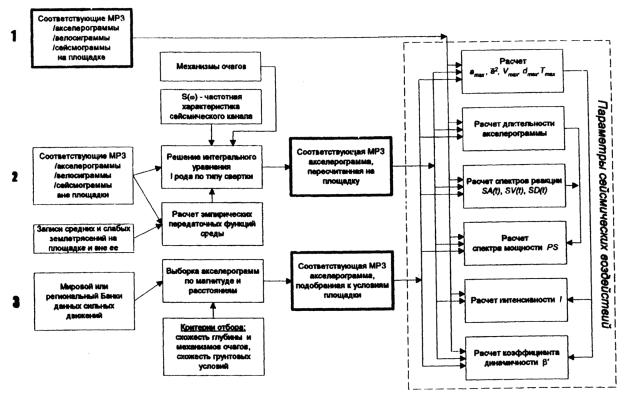 грунта, параметрам очага землетрясения и расстоянию до пункта