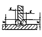 Рис.5 11.8. При сварке в положениях, отличных от нижнего, допускается увеличение размеров шва, но не более 2 мм - для деталей толщиной до 25 мм, 3 мм - свыше 25 мм. 11.9. При сварке в гелии при постоянном токе размеры шва могут быть уменьшены до 15 %. 11.10. Для расчетных угловых швов значения катетов К должны быть установлены при проектировании сварного соединения. 11.11. Предельные отклонения величины катета расчетных швов должны соответствовать: + 2,0 мм при К <5 мм; + 3,0 мм при 5 ≤ К ≤ 8 мм; + 4,0 мм при К > 8 мм. 11.12. При выполнении рядом расположенных швов расстояние между ними следует устанавливать: для толщины материала до 4 мм - не менее 60 мм; для толщины материала от 4 до 6 мм - не менее 70 мм; для толщины материала свыше 6 мм - не менее 90 мм. Примечание. Расстояние между рядом расположенными швами может быть изменено, если это предусмотрено КД, но должно быть не менее 60 мм. 12. ОТСТУПЛЕНИЯ ОТ УСТАНОВЛЕННЫХ ТРЕБОВАНИЙПри технической невозможности или экономической нецелесообразности соблюдения отдельных требований настоящего документа допускаются обоснованные отступления, оформляемые совместными техническими решениями конструкторской (проектной) организации и предприятием-изготовителем (монтажной организацией), согласованными с ГОМО и Госпроматомнадзором СССР. Приложение