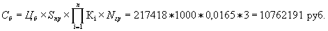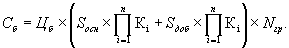 * Значение коэффициентов между рядами величин площади проектируемого участка определяются с использованием метода интерполяции. При площади проектируемого участка свыше 1000 га базовая стоимость определяется следующим образом. Площадь проектируемого участка разбивается на основную (Sосн = 1000 га) и добавочную (Sдоб = Sуч - Sосн) площади. К базовой стоимости, рассчитанной для основной площади (Sосн = 1000 га), прибавляется базовая стоимость для добавочной площади (Sдоб = Sуч - Sосн), рассчитанная с изменением коэффициента на площадь проектируемой территории (к1) в размере 0,02. При этом произведение поправочных коэффициентов рассчитывается отдельно для каждого вида площадей. Тогда, формула для расчета базовой стоимости примет вид:
