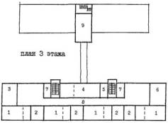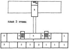 Рис. 18 Пример архитектурно-планировочного решения реконструкции здания школы типа МЮ для школы на 33 класса 990 учащихся. План 3 этажа А