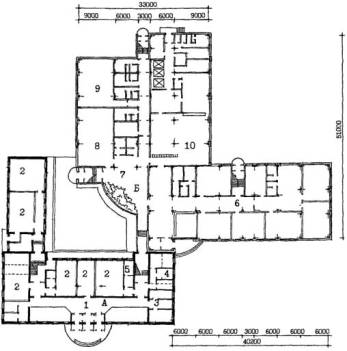 Рис. 12 Пример архитектурно-планировочного решения реконструкции здания школы типа МЮ для школы на 33 класса 825 учащихся План 1 этажа А