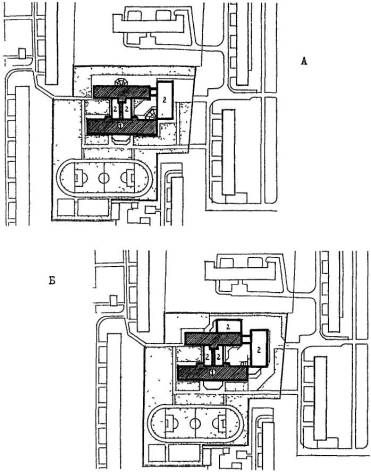 - существующее здание; Б - пристраиваемые объемы