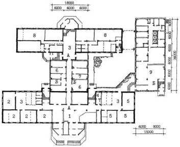 Рис. 21 Пример архитектурно-планировочного решения реконструкции здания школы типа 65-426.1 для школы на 33 класса 825 учащихся. План 1 этажа. А