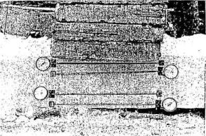Рис. 1.4. Загружение ледяной балки испытательной нагрузкой База приборов равна 500 мм. Цена одного деления прибора