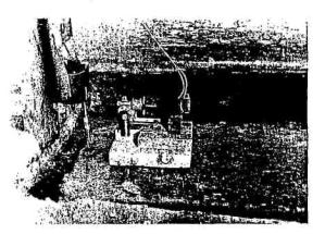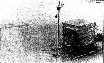 Рис. 2.3. График изменения коэффициента неупругого сопротивления льда в зависимости от температуры окружающего воздуха На рис. 2.3 построена кривая по формуле (2.20), отражающая изменение величины коэффициента ψ от температуры воздуха t. 2.5.2. Определение коэффициента ψ льда и логарифмического декремента затухания δ воды по второму способу Опытное определение логарифмического декремента затухания колебаний ледяного слоя, лежащего на воде, производилось на примере колебаний ледяных консолей, вырезанных в ледяном естественном слое. Опыты проводились 2 и 4 декабря 1970 г. Начальная амплитуда колебаний консоли создавалась специальным вибратором (рис. 2.4), который устанавливался на конце консоли, а затем быстро убирался. Выведенная таким образом из состояния статического равновесия консоль совершала колебания. В этом колебательном процессе участвуют ледяная консоль и вода как упругое жидкое основание. Из состояния покоя консоль выводилась и с помощью статической временной нагрузки, периодически прикладываемой и снимаемой на ее конце.