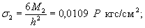 Изгибающие моменты в сечении под нагрузкой (2.23), (2.24) Мх = 0,182 Р кгс; Му = 0,155 Р кгс. Напряжения в верхних фибрах намороженного слоя