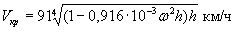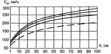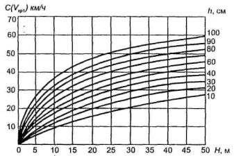 На рис. 9.1 даны графики изменения скорости распространения свободных волн под ледяным покровом в зависимости от глубины воды Н и толщины льда h.