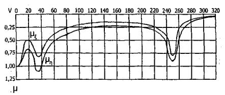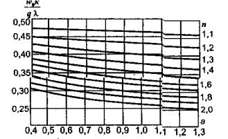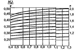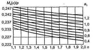 Рис. 9.4. Изменение динамического коэффициента по напряжениям в зависимости от скорости движения груза по ледяному покрову Выражения изгибающих моментов будут в данном случае иметь следующий вид