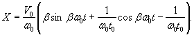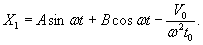 Постоянные интегрирования можно определить из следующего условия: при t=t1 величины X и Х1 должны быть соответственно равны. Переходя к пределу при t1→0 и αt1→V0,