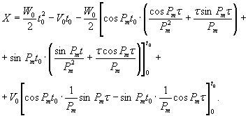 После интегрирования и необходиых преобразований, получим уравнение движения центра массы m в виде