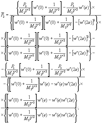 Сравнивая выражения (10.38) и (8.4), делаем вывод, что задачу о движении груза можно рассматривать как задачу о движении нагрузки, в точке приложения которой имеется пружина против кривизны с жесткостью G=M V2. Принимая во внимание данный вывод, распространим полученные выше решения на случай системы связанных движущихся грузов. Рассмотрим движение колонны из трех грузов P1=M1g, P2=M2g и P3=M3g с постоянной скоростью V; интервал между грузами С, начало координат в точке приложения первого груза Р1. Если в точках приложения грузов передаются нагрузки Р1, Р2 и Р3, то их можно определить из следующей системы уравнений