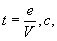 по оси координат ξ, в направлении движения при 0<V≤C