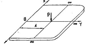 бесконечному ледяному слою, предположим, что в точке приложения груза имеется