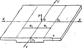 где h - толщина плиты; Е - модуль упругости; v - коэффициент Пуассона материала плиты. Между перемещениями основания и реактивными давлениями существуют следующие соотношения: Р(х,у) = K0w(x,y), (3.2) P(r) = K0w(r), где K0 - коэффициент постели, имеющий размерность кгс/см3 или тс/м3, и в данном случае численно равный объемному весу воды. 3.1.2. Расчет плит в прямоугольной системе осей координат Как известно, оператор Лапласа в прямоугольной системе координат имеет вид