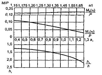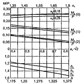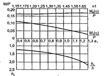 На основе решения, изложенного в п. 4.7, имеем при h =8,5 см l = 40,87×10-4 см, а для h1 = 11 см l1 = 34,06×10-4 см, отношение n = 1,2, а безразмерная ширина намороженной полосы составляет 2а=1,64. Прогиб под нагрузкой, при а=0,82, равен (2.32) W = 0,00123 Р cм. Изгибающие моменты под нагрузкой (2.33), (2.34) соответственно равны М1 = 0,189 Р кгс; М2 = 0,220 Р кгс. Напряжения в верхних фибрах ледяного слоя