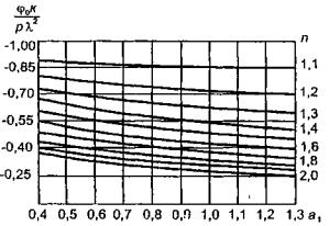 где g - ускорение свободного падения; Н - глубина воды; λ1 - характеристика ледяного покрова как плиты на упругом основании (глава 8, п. 8.2). Выражение в скобках, в отличие от формулы (9.1) может быть меньше единицы. Высота одиночной прогрессивной волны, по данным опытов [56] составляет третью часть от прогиба, ледяного покрова под нагрузкой. Определяя прогиб под движущейся нагрузкой по формуле (8.7), после сортветствующих преобразований, представим: выражение для определения высоты одиночной прогрессивной волны в следующем виде