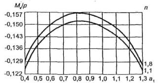 Изгибающие моменты под нагрузкой (4.33), (4.34), при n=1, равны