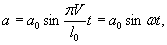 В данном случае вынужденные колебания системы являются результатом движения точки крепления упругой связи. При колебаниях точки крепления упругой связи по закону f(t) груз колеблется так, как если бы на него действовала возмущающая сила P(t)=cf(t). Рассмотрим конкретный пример. Аналитическое выражение микропрофиля дороги для обособленной неровности наиболее характерной синусоидальной формы, имеющей максимальную длину l и высоту а0, можно представить в виде