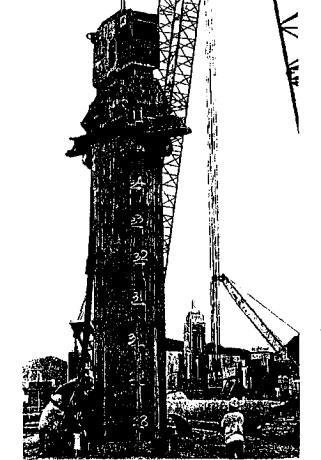 Погружение и извлечение шпунта вибромолотами связаны с неизбежными сотрясениями грунта, которые крайне нежелательны по экологическим соображениям и недопустимы при работе вблизи существующих сооружений. Гидравлический агрегат Tiewood английской фирмы BSP работает почти бесшумно, используя принцип статического группового задавливания металлических шпунтовых свай, (рис. 31). Длина хода штоков гидродомкратов - 0,75 м.