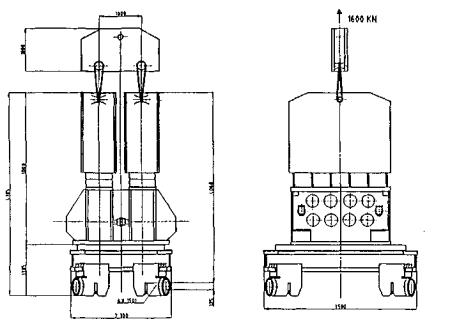 Рис. 20. Тандем из двух гидровибропогружателей 100HD фирмы РТС, применяемый для погружения оболочек диаметром 1,3-3,0 м (вынуждающая сила - 6000 кН; масса вибромашины - 45,4 т) Таблица 10 Техническая характеристика гидровибропогружателей зарубежного производства