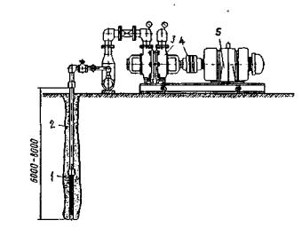 Рис. 35. Иглофильтровая установка: 1 - иглофильтр; 2 - всасывающая труба; 3 - центробежный насос; 4 - муфта: 5 - электродвигатель При небольшом объеме притока воды в котлован со шпунтовым ограждением используют погружные центробежные моноблочные насосы типа ГНОМ производительностью 10-40 м3/ч. При значительном притоке воды в котлован используют центробежные самовсасывающие одноступенчатые насосы типа НЦС производительностью 18 -130 м3/ч, которыми можно откачивать и загрязненную воду. При необходимости понижения уровня грунтовых вод в зоне котлована в несвязных грунтах применяют иглофильтровые установки (см. рис. 35). 5.5. Машины для фундаментов на вечномерзлых грунтахПри строительстве фундамента на вечномерзлых грунтах (ВМГ) их используют по одному из двух основных принципов: по принципу I, предусматривающему сохранение грунта в мерзлом состоянии весь период строительства и эксплуатации сооружения; по принципу II, допускающему деградацию (частичное или полное размерзание) вечной мерзлоты. Принятый принцип определяет выбор конструкции фундамента, технологию и механизацию его возведения.