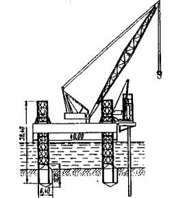 Затем по графику (рис. 25 [21]) или по формуле (4.1), решенной относительно lgNпр, определим допустимое количество ударов по свае из условия начала разрушения головы (значения Кд.у и Кв приняты по табл. 8 для данной сваи): lgNпp = (Кд.у-s/Rb)/Kд = (3,30-17,7×0,78/15,5)/0,8 = 3,01, где 0,78 - коэффициент перехода от кубиковой прочности к призменной прочности бетона. Nпр = 1000 ударов > Ny = 549 ударов, т.е. условие бездефектного погружения свай выполняется. Таким образом, данный пример демонстрирует выполнение технологических расчетов при погружении свай способом забивки. Копры и копровые установки. Процесс погружения свай включает в себя подъем и установку свай в направляющие, подъем, установку на сваю и запуск молота, обеспечение совместного поступательного движения сваи и молота. Все эти функции выполняются сваебойными агрегатами - копрами. В качестве копров могут использоваться специально созданные для этого самоходные машины или установки в виде навесного копрового оборудования на базовые машины - тракторы, экскаваторы, подъемные краны. Для перемещения копров по свайному полю при возведении речных опор устраивают подкопровые мосты, эстакады, подмости. Копры устанавливают и на плавучие средства (рис. 10, 11).