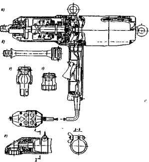 Рис. 78. Гайковерт с насадками: а - гайковерт; б - удлинитель (торсион); в - шарнирный переходник; г - сменная головка; д - угловой переходник
