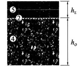 Рисунок 1 Основные типы конструктивных решений 1, 3 - устраиваемые верхние слои покрытия толщиной; 2-армирующая прослойка; 4 - блочное основание (несущее основание при новом строительстве толщиной h0); 5 - устраиваемый верхний слой или слой покрытия толщиной hΣ. 5.5 Толщины слоев асфальтобетонного покрытия должны отвечать требованиям п. 2.9 (2.6) и п. 2.15 (2.7) при укладке на верхний слой основания из материалов, укрепленных цементом. Минимальные толщины hΣ при укладке на асфальтобетонное блочное основание рекомендуется принимать по табл. 4 (2.5). Таблица 4