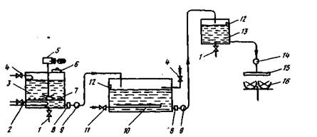 В зависимости от потребности и вместимости смесителя приготавливают рабочий раствор требуемого объема, который определяется как произведение расхода раствора добавки и воды (на 1 т смеси), производительности данного смесителя и времени (в часах) работы. Например, при производительности смесительной установки 100 т/ч. Для работы одной смены (8 ч) необходимо приготовить следующий рабочий раствор: 0,0066×100×8 = 5,28 (т) 30%-ного раствора ЩСПК и 0,684×100×8 = 54,72 (т) воды для разбавления.