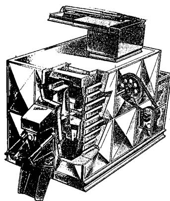 Примечание: знак "+" означает всегда требуется; знак "-" не требуется, знак "(+)" требуется при определенных условиях Укладка литой асфальтобетонной смеси и отделка поверхности покрытия 5.17. Устройство покрытия из литой смеси I типа на загородных автомагистралях ведут с помощью комплекта спецоборудования, передвигающегося по рельсам или на гусеницах (рис. 5). В составе оборудования - агрегат для распределения смеси и агрегат для распределения и втапливания черного щебня. Оба агрегата связаны между собой жесткой сцепкой. Агрегат для распределения смеси имеет обогреваемые отвал с перемещающейся вдоль него лопастью и выглаживающую плиту. Агрегат для распределения и втапливания черного щебня оборудован: ленточным конвейером для подачи щебня из придорожного штабеля или из кузова автомобиля в расходные бункеры, щебнераспределителем с рифлеными вальцами, расположенными в шахматном порядке.