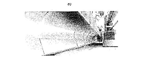 Рис. 6. Асфальтоукладчик СУПЕР-1502 GAF для распределения литой смеси I типа а) обогреваемый приемный бункер с винтовыми конвейерами, б) распределительный отсек с транспортирующими лопатками После нагрева рабочих органов машинист объявляет готовность сигнальщику, который в свою очередь руководит действиями водителя термоса-миксера. Водитель задним ходом подает термос-миксер к асфальтоукладчику до тех пор, пока его задние колеса не коснутся направляющих роликов асфальтоукладчика, снимает машину со скорости и оставляет ее в расторможенном состоянии, управляя машиной. Рабочие - асфальтобетонщики, обслуживающие асфальтоукладчик открывают крышки его приемного бункера, и заслонку термоса-миксера. Литая смесь начинает поступать в приемный бункер укладчика. Одновременно машинист включает винтовые конвейеры приемного бункера и вал с лопастями расположенный в емкости распределительного отсека. После наполнения емкости литой смесью при непрерывном ее перемешивании лопастями машинист укладчика включает минимальную скорость и начинает укладку. В дальнейшем литая смесь из термосов-миксеров принимается на ходу без остановки асфальтоукладчика. Скорость укладки регулируют в зависимости от объема поступающей смеси и толщины слоя. При этом машинист укладчика должен постоянно следить за уровнем смеси в емкости распределительного отсека, не допуская его снижения ниже уровня вала. 3 противном случае, произойдет утоньшение слоя, частичный или полный его разрыв. С учетом усадки асфальтобетона при его охлаждении слой укладывают толще проектного на 8 - 10%. При наличии бордюра боковая стенка емкости распределительного отсека должна находиться на расстоянии не менее 50 мм от него. В образовавшееся пространство смесь добавляют вручную, а затем, распределяют и заглаживают ручным инструментом Движение асфальтоукладчика над выступающими крышками колодцев и водоприемными решетками, должно проходить на минимальной скорости. При этом решетки, во избежание засорения колодца смесью, заблаговременно закрывают металлическим листом или фанерой. При укладке литой смеси I типа двумя и более асфальтоукладчиками опережение одного укладчика другим не должно превышать 20 м. Новую полосу укладывают вплотную к уложенной, без ее перекрытия. В целях обеспечения прочного сцепления граней смежных полос при температуре воздуха от +5 до +10 °С длину укладываемой полосы ограничивают 50 метрами. При этом заканчивать укладку последней полосы необходимо вровень с ранее устроенными, чтобы обеспечить прямолинейный поперечный шов. Поверхность покрытия должна быть ровной, однородной, без разрывов и раковин. При появлении дефектов во время укладки они должны быть немедленно устранены вручную горячей смесью, утрамбованы и затерты вровень с покрытием. По окончании рабочей смены или при вынужденных перерывах необходимо полностью освободить и очистить асфальтоукладчик от смеси путем выдвижения его вперед до полной выработки смеси из приемного бункера транспортных коммуникаций и распределительного отсека. Слой при этом клинообразно утоньшается, а полоса укладки сужается. Пока смесь еще не затвердела, в месте утоньшения слоя его по рейке ровно обрезают и вплотную к нему крепят упорный брус (рис. 7).