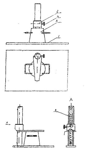 Рис. П1. Схема прибора для определения подвижности литой асфальтобетонной смеси 1. Подставка. 2. Прижим. 3. Форма