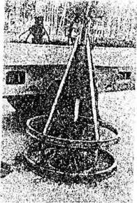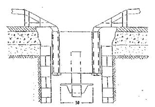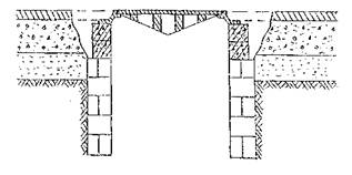 3.2. Ремонт асфальтобетонного покрытия у люка смотрового колодца3.2.1. Перед началом работ место ремонта ограждают, как это показано на рис. 8. После этого необходимо убедиться в отсутствии скопления газов в колодце. Для этого нужно открыть крышку колодца и с помощью сертифицированных газоанализаторов произвести проверку, При отсутствии газоанализаторов наличие газов можно установить рудничной предохранительной бензиновой лампой. Зажженная рудничная лампа опускается на веревке в колодец. Для того, чтобы удобнее наблюдать за ее пламенем в колодце, к лампочке монтируют зеркало, устанавливаемое под углом 45°. При обнаружении газа в колодце открывают крышки люков нескольких смотровых колодцев и коммуникационную сеть проветривают. Принудительное проветривание производится установкой вентилятора над колодцем. Удалять газ можно и промывкой колодца и коллектора. При этом, движение воды, подаваемой под давлением, создает и движение воздуха. 3.2.2. Убедившись в отсутствии газа, в колодце по центру горловины колодца устанавливают с помощью гидравлического крана, смонтированного на бортовой машине, гидравлический съемник (рис. 9). Головку съемника вводят в люк и с помощью рычага раздвигают захваты головки и подводят их под бортик люка. После установки съемника включают в действие гидроцилиндр и люк извлекают из гнезда. После демонтажа люка съемник краном грузят на платформу машины и перемещают к следующему колодцу. Производительность съемника 12 люков в час. После уборки отходов от демонтажа люка в горловину вставляют специальное устройство (рис. 10), с помощью которого осуществляют работы по ремонту стенок горловины и опорного кольца люка. Рабочий, находясь в обечайке устройства, производит указанные работы, используя ее, как опалубку для укладки быстротвердеющей цементобетонной смеси или как подмости для установки железобетонных сегментов в основание люка (см. рис. 10). После ремонта колодца и выведения отметки люка на отметку существующего покрытия люк закрывают крышкой и производят обрубку покрытия вокруг него по намеченному контуру и восстанавливают дорожную одежду.