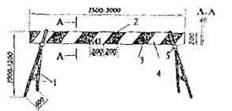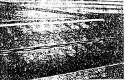 ниже 200°С, а укладываемый слой - толщину не менее ремонт широких карт (шириной более двух метров) ведут полосами. С этой целью в продольном направлении устанавливают упорные деревянные брусья или металлические трубы прямоугольного сечения, которые после заливки полосы снимают и переставляют для заливки следующей полосы (рис. 7). Высота брусьев должна соответствовать толщине укладываемого слоя; если при укладке смеси в большие карты процесс прерывается на время, большее Рис. 7. Установка периода остывания смеси, то заканчивать упорного бруса ремонт карты следует установкой упорного бруса в поперечном направлении. Поперечные сопряжения полос должны быть перпендикулярны оси дороги. Обнаруженные на покрытии дефекты, особенно в местах примыкания к краям карт, исправляют с помощью утюга и ручной трамбовки (см. Раздел 6. рис. 13).