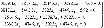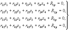 где kl - коэффициент, принимаемый по прил. 3 СНиП II-16-74; Bс,св - жесткость сваи при сжатии; lN - длина сжатия сваи, определяемая по прил. 15 Руководства по проектированию свайных фундаментов (М.: Стройиздат, 1980); dcв - расстояние между осями свай в плоскости опоры; n - количество свай в ряду (в направлении, перпендикулярном плоскости опоры). 3.6. Значение z1 определяют решением системы линейных алгебраических уравнений: где rij - единичные реакции; Rip - грузовые члены. 3.7. Единичные реакции rij системы уравнений (66) определяют по формулам: