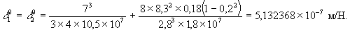 2. Определяем единичные перемещения деформируемых опорных частей по формуле (28): для первого и второго пролетов