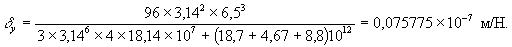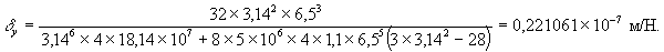 Для определения δy при горизонтальных деформациях сжатия предварительно по формулам (18)-(20) вычислим: α = 24×5×106×4×1,1×6,54(6×3,142×1,08+3×3,142×6,5-16×3,14×1,08-28×6,5) = = 1874658,3×107 Н·м2; β = 48×3,142×5×106×6,53(2×1,08+0,5)(9,8-4×1,1)×0,5 = 466719,6×107 Н·м2; γ = 2×3,142×5×106×9,8×6,5×1,082[4×6,5(6×6,5+3,14×1,08)+3,14×1,08(4×6,5+3,14×1,08)] = = 880379,0×107 Н·м2. По формуле (17)