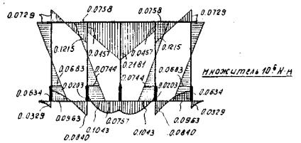 b0 - расстояние между осями i-й и (i+1)-й балок; tgφр - тангенс угла поворота ригеля, определяемый по формуле (95). Примечание. В формулах (111), (114), (117) и (120) последние два слагаемых равны нулю при всех значениях k, кроме - k = j. Таблица 1