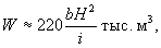 где H- глубина пруда (до лотка сооружения), м; b - ширина зеркала пруда в м (вдоль трассы) при глубине H; i - средний уклон в тысячных выше сооружения в пределах пруда. Для ориентировочных соображении объем пруда можно принимать по табл. 5. Ориентировочный объем пруда W1