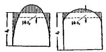 где ω2c2R = kd2 (kd - расходная характеристика трубы). При обычной форме входного оголовка (необтекаемой) напорное протекание будет периодически срываться из-за подсоса воздуха в сжатое сечение потока (даже при H ≥ 1,4hТ и I < Iw). Такие трубы нужно рассчитывать как полунапорные, так как режим протекания в моменты срыва будет соответствовать полунапорному. Если уровень воды в отводящем русле выше верха выходного сечения трубы на величину Δh, то необходимо учитывать, что уровень воды перед трубой увеличится на ту же величину (т.е. на Δh), но при условии, что: