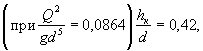 Примечания: 1. Расход 2. Для заполненного сечения железобетонных труб Kd = 24d8/3 Wd = 30,5d2/3 (d в метрах). Если бы уклон был I = 0, то на выходе установилась бы критическая глубина. Критическая функция в этом случае равна: