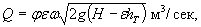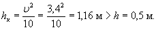 напор H = 1,6hк = 0,16υ2, отверстие