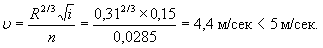 Возвышение низа конструкции: hк + 0,50 = 1,16 + 0,50 = 1,66 м. Скорость при максимальном расходе: