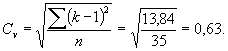 где Вычисления коэффициента вариации удобнее всего вести в табличной форме, как это указано в нижеследующем примере. Пример определения коэффициента Cv (при числе лет непрерывных наблюдений n = 35, с 1887 по 1932 г. включительно). Таблица „в"