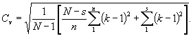 где N - количество всех лет наблюдений; s - количество отдельно зафиксированных больших расходов; n - число непрерывно наблюденных расходов, а коэффициент вариации реки